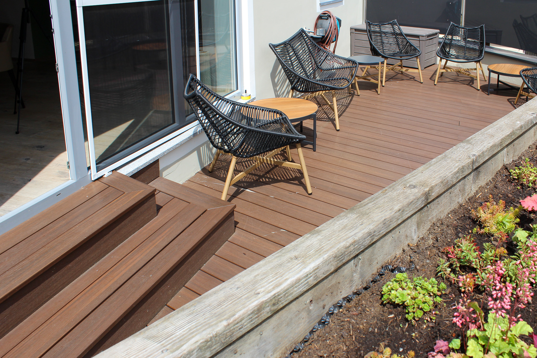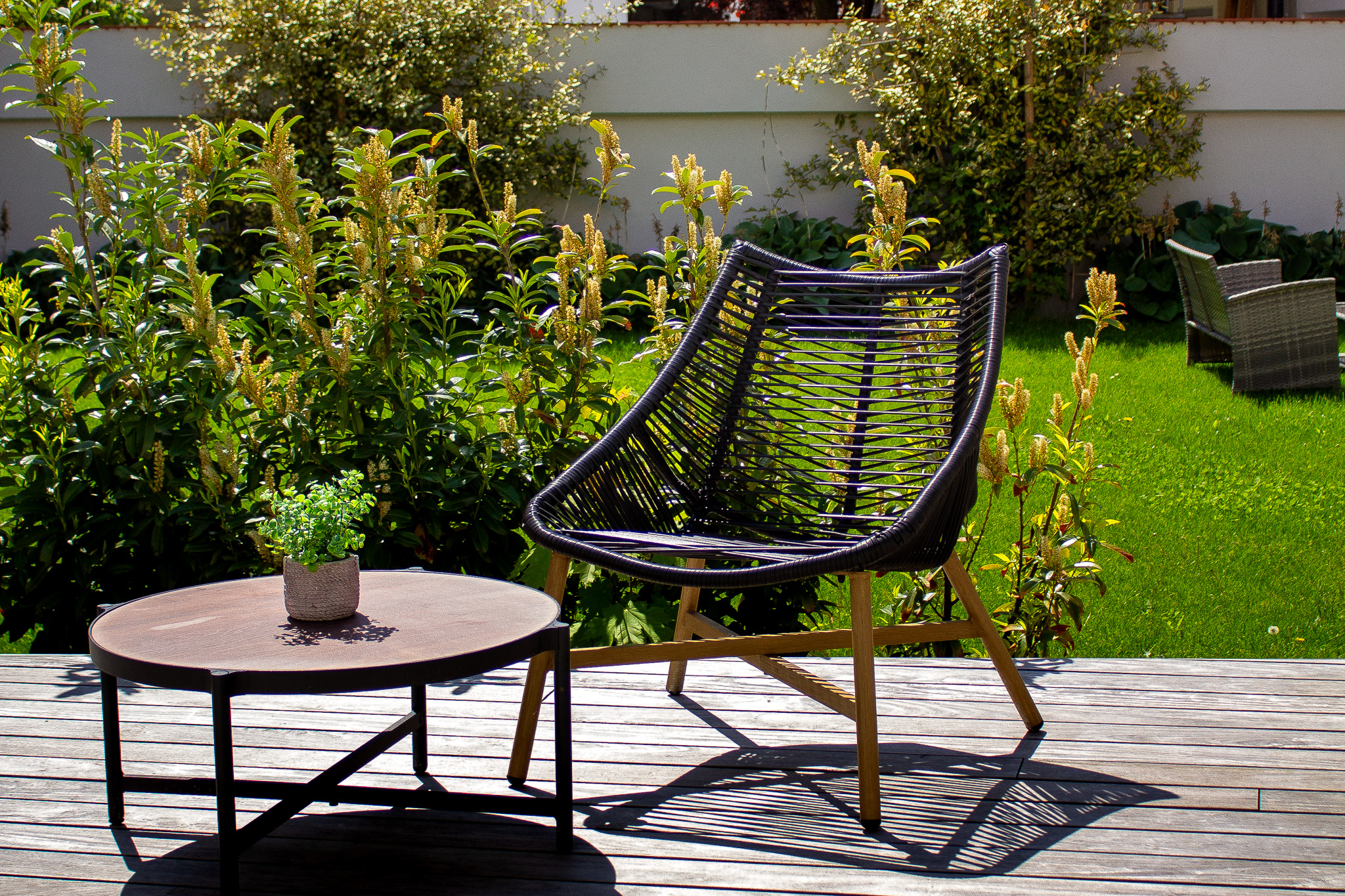 1 Terrasse mit Kräuterhochbeet und Sitzgelegenheit